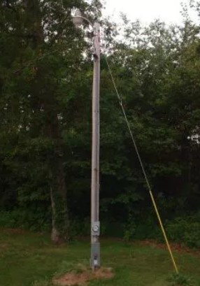 De como funciona un sistema eléctrico. Las líneas de servicio aéreas de la compañía eléctrica alimentan el transformador para reducir el voltaje que alimenta su casa. A continuación, viaja hasta el cabezal de intemperie (cabezal de servicio) que está unido a un conducto conectado a una caja de contadores. Este conjunto se fija con pernos de anclaje y correas para soportar el peso de la tubería y el cable.