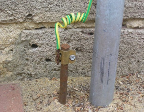 El servicio debe conectarse a una varilla de tierra fuera de la casa y también debe conectarse alrededor del contador de agua en la casa. Hay que hacer un puente conectado a ambos lados del contador para poder retirarlo sin perder la conexión a tierra.